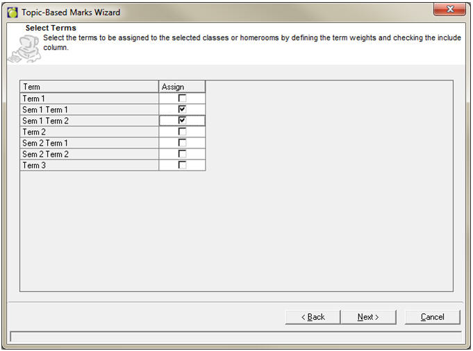 The wizard can be run to assign Terms and Topics to classes and homerooms en masse.