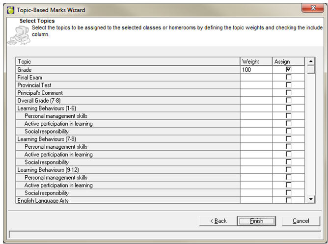 Choose Marks, Topic Based Marks, Wizard If you are in a jurisdiction that uses a provincially-defined report card, please refer to jurisdictional documentation for information on running the Wizard.