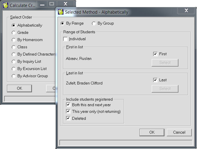 Click ok to begin the process. Use the After Current button to stop the process after the currently displayed student.