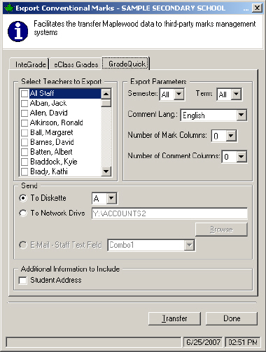 Click Transfer and Maplewood will export the information to the specified location.
