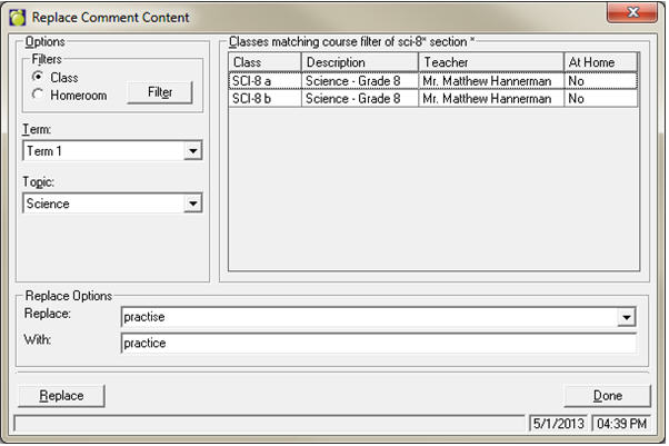 Choose Marks, Topic Based Marks, Find and Replace Comment Text.