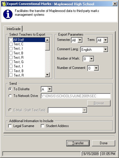 Although there is no technical set up required to export files to InteGrade, it is recommended that schools verify the following areas: