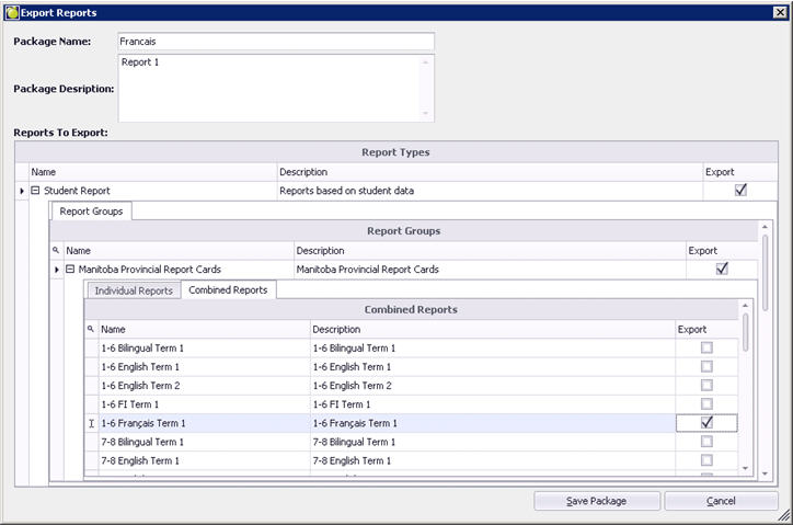 Exporting a report package