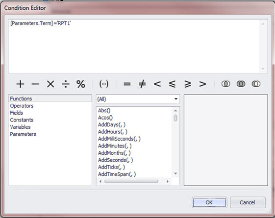 The condition for this example will be: [Parameters.Term]='RPT1'