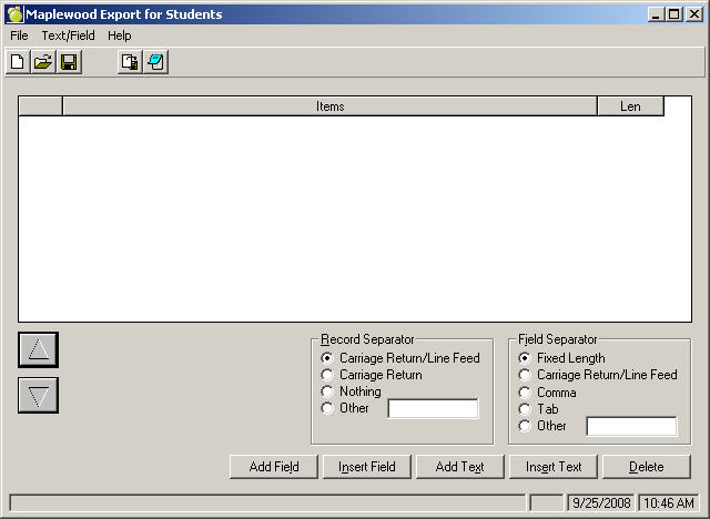This exporting feature is a separate Report Builder program. Use this Application to export data to another program. To access Report Builder for Exporting, choose Reports, Report Builder, Reports For Exporting. Then select from Present Students, Past Students, Staff, Classes or Courses depending on which group you would like to export information.
