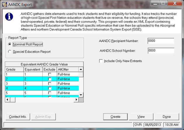 New! This document explains how to use the Maplewood system to report data to Aboriginal Affairs and Northern Development Canada (AANDC), formerly Indian and Northern Affairs (INAC). Maplewood provides an application to create an XML file containing student Nominal Roll specific information both at the school level and via central office. This file can then uploaded to the Aboriginal Affairs and Northern Development Canada School Information System Export (SISE).