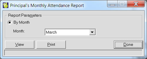 Choose Attendance, Print Attendance Registers, Principal’s Monthly Attendance Report.