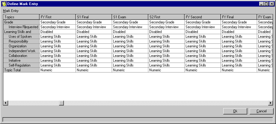 Below is a view of what the Define Mark Entry screen looks like in the Elementary system.