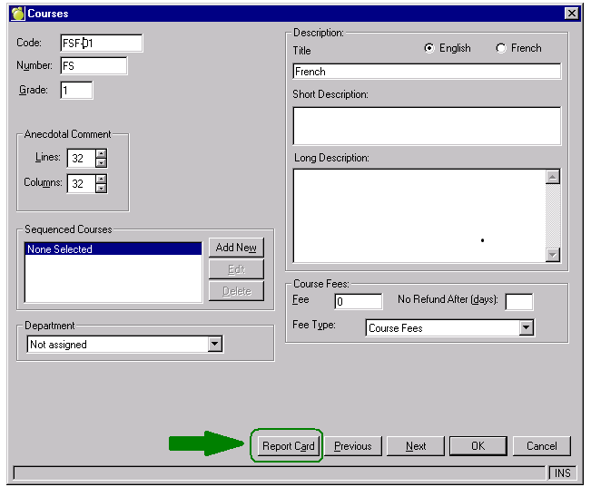 IMPORTANT NOTE: the wizard will NOT add French, Immersion, Extended, or Core for Elementary, and it will NOT add SHSM to the Secondary system. THESE AREAS ARE AUTOMATICALLY POPULATED BY THE REPORT CARD PROGRAM AT THE TIME OF PRINTING, and is dependent upon what is entered in the Classes File (for the French checkbox) and Enrolment Record - Other Field Tab (For Immersion, Extended and Core - in the subject of French) for Elementary**, and the Codes file and History area (under SHSM Program) for Secondary.