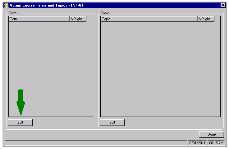 Selecting the Edit button for terms allows the user to select the terms associated to that course.