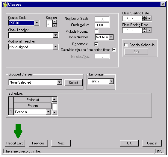 2) At the Class Level (File, School Setup, Classes)