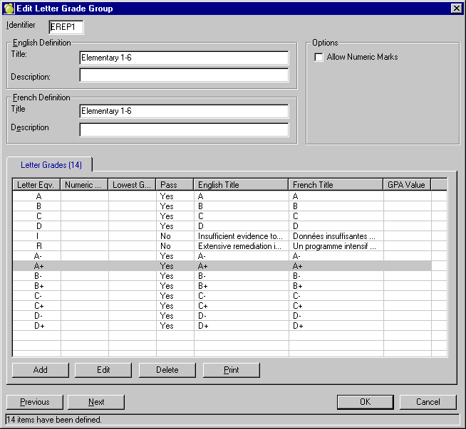 Define Letter Grade Groups (Marks, Define Letter Grade Groups)