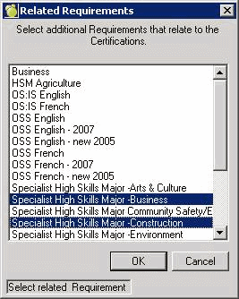 This is a multi-select area, so users can select all of the related requirements by highlighting each with one left click of the mouse, or by using the space bar and arrow keys. Once all related requirements have been highlighted, then select OK. All selected requirements will now appear in the 'Related Requirements' list.