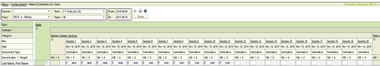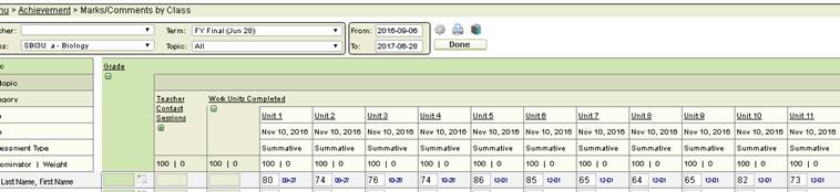 - Select the Marks/Comments by Class option