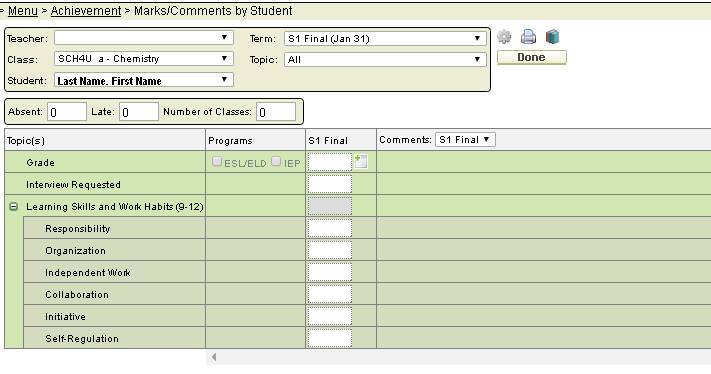 - Select Marks/Comments by Student