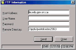 Host Address: ns.edu.gov.on.ca is the default to send to the Ministry. You can change this to your Board's FTP site.