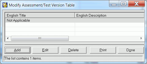 Every assessment test has a version, even if the version is something such as Not Applicable or Unknown. Versions are sometimes used when a test gets updated in subsequent years, and the version field can be used to track the version of the test that the student took. The version setup is completely user-definable, however, to simplify the setup, we are suggesting just create a version called Not Applicable.