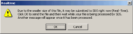 The SDS Electronic File Transfer has 2 different methods of receiving files. If a file is small (under 32KB), it may be sent to a “real-time internet address (URL) where it is processed immediately. If it is a larger file, it must be sent to a “batch URL where it is processed as soon as possible (it should be processed by the next day). In Maplewood, the Send option will detect the size and will display the appropriate messages.