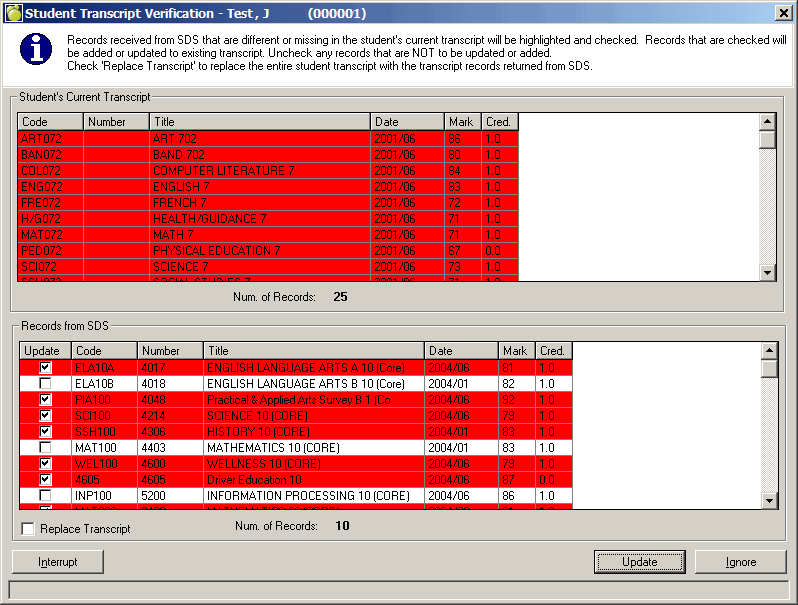 | Dropped Code | Required if applicable | Student, History, Edit. Send: -Yes -No Based on whether or not the course appears in the Transcript with a mark of W. |
