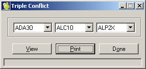 To print conflict matrices, choose Scheduling, Print Conflict Matrix, or Print Triple Conflict Matrix.