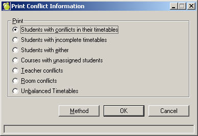 This will print students who have either conflicts in their timetables or incomplete timetables. Be sure to pay particular attention to the title above each student for an explanation of why the student is included.
