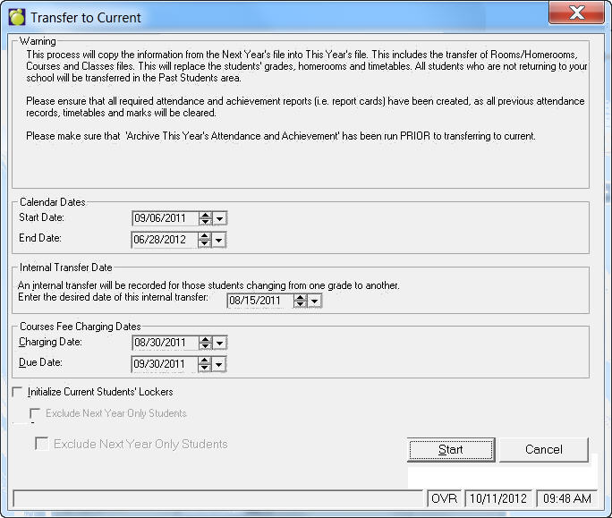 Note: When you transfer to current the attendance type does not change based on the new timetable. You will need to run Calculate FT/PT Attendance option under Students menu. This will give you a report of the students who should be changed, however, it will not change the data. The school/you will have to change the appropriate students.
