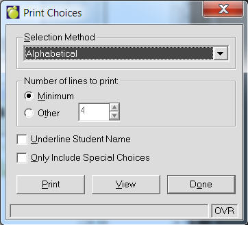 Choose Scheduling, Print Students’ Choices and click the Print Choices option.