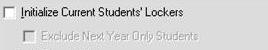 If the school has lockers for students, and the lockers are reassigned each school year, check the box to Initialize Current Students' Lockers if you want the lockers to be cleared out. If the students who are new to the school (Next Year Only students) have had their lockers already assigned, check the Exclude Next Year Only Students box so that those lockers are not cleared out.