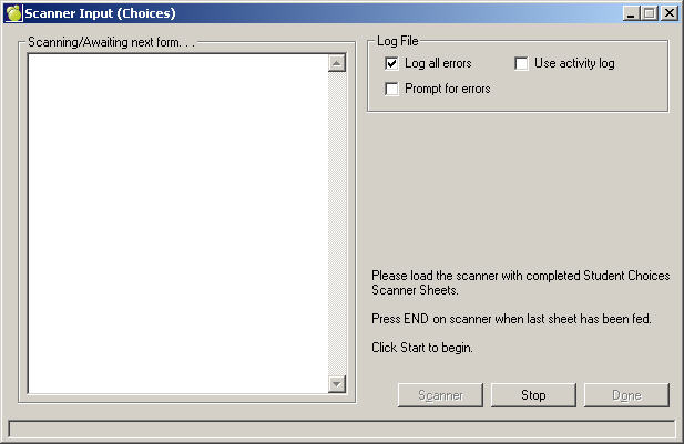Note: If some choices were ever entered previous to scanner input, the scanner input will not duplicate any entries already existing in student choices.
