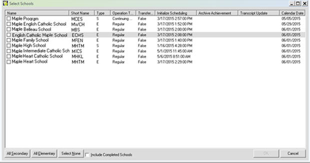 This menu option is available in Central Office, for Enterprise boards/divisions, and can be run for a group of schools at one time. It can also be run at the school level. Boards/Divisions may choose to have schools run this option, or it may be run centrally for a group of schools.