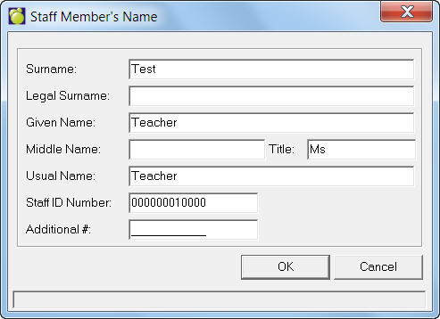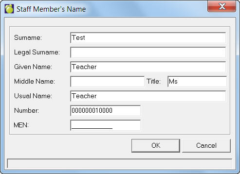 Name - Choose the Personal, Name menu option, or click Name on the Biographics tab to edit a staff member's Surname, Legal, Given, Middle and Usual Name.