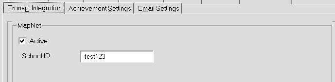 The Transp. Integration tab (Transportation Integration) is available to all users. Setup for Transportation Integration is done from the Central Office, but a school can view their settings from the school level.