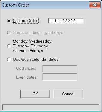 The Odd/even calendar dates option, if selected, allows the user to select what the cycle day is on odd dates vs even dates. For example, if a school needs to setup a daily rotation that reflects odd days of the month as Day 1 and even days of the month as Day 2, the entry would be Odd Dates: 1, Even Dates: 2 .