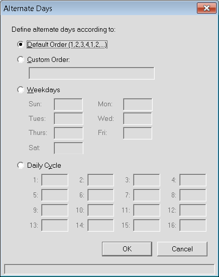 Changing the Cycle Day or Alternate Day - From the month view (not the year view) of the calendar, select a day by clicking it and they click the Cycle Day button or Alt. Day button. On the resulting form, enter the desired cycle day or alternate day. Upon making the change, it will prompt a message asking if all subsequent cycle days are also to be updated.