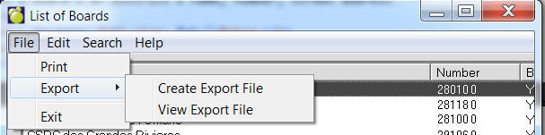 Boards/Districts can now be exported to a file. To do this, use the menu at the top to select File, Export, Save. Once the file is created, it may be viewed by selecting File, Export, File Export View. The file is in comma delimited format (csv) and includes headers. For hosting customers, if you want to use the file in Excel (as an example), use the View option to find the file and then copy and paste it to a local machine licensed for Excel.