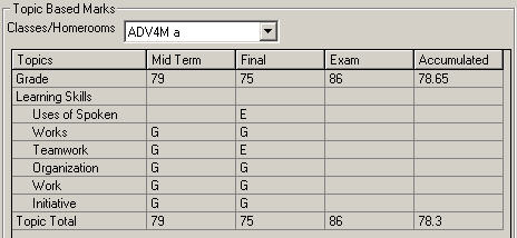 From the main student records screen, achievement tab, click the Topic Based Marks option button and then select a Class/Homeroom from the drop-down list.