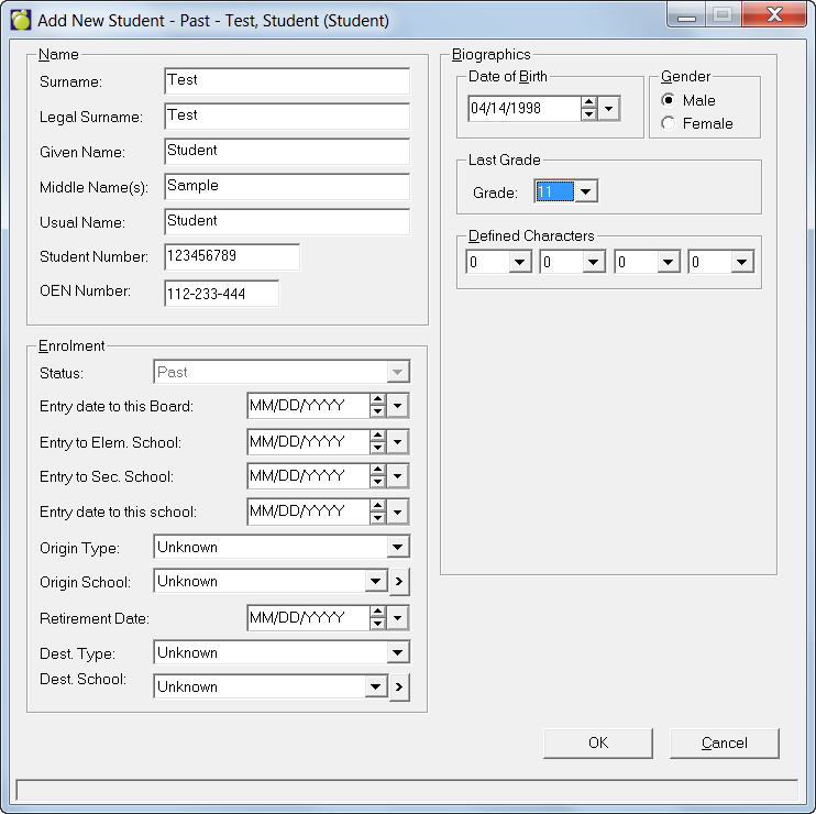 If you wish to add a student manually, choose Students, Add Past Students to see an Add New Student box. Enter applicable information and click OK to save the record.