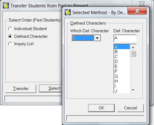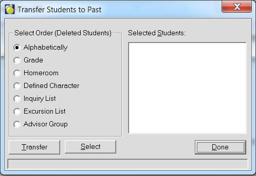 1. To transfer students choose Students, Transfer, From Present to Past to see a Transfer screen.