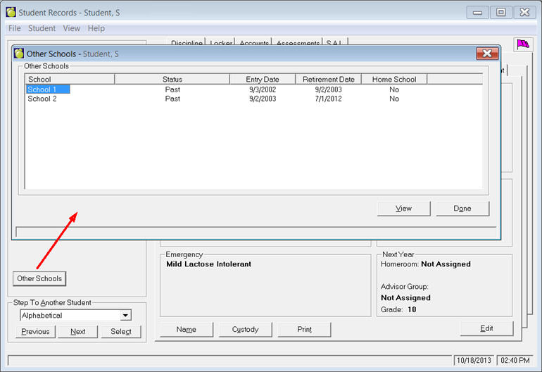 Security has been added for the Other Schools Button in Student Records. Users can be set to View Only, or No Rights.