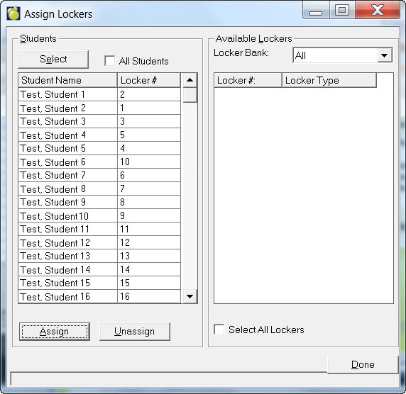 lockers, check the All Students checkbox. Otherwise, highlight the