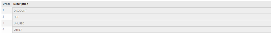 •The first tax code entered should be the code that will be used the most. IE – HST – 13%. This code will appear as the default value when taxation is being selected, and may be overridden at the time of data entry.