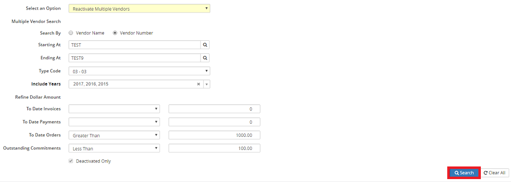 Note: Refer to How to use Vendor Search for more information on how to use this feature.