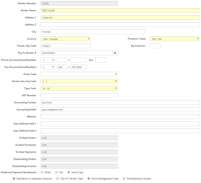 Note: The following fields are read-only: To Date Orders, To Date Purchases, To Date Payments, Outstanding Orders and Outstanding Invoices.