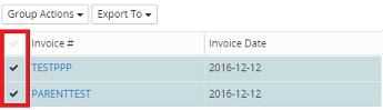 1. Select as many or as few unpaid invoices from the results displayed in the grid, by clicking the corresponding check mark beside each unpaid invoice or click the check mark at the top of the grid to select all unpaid invoices.