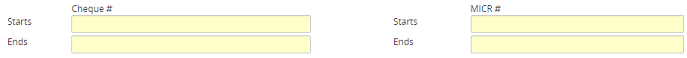 2. In the Cheque # section, enter the Starts and Ends cheque numbers.