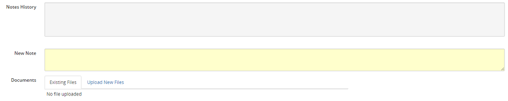 Note: Notes entered in this field will be saved and may be viewed in the Notes History section and are read-only.