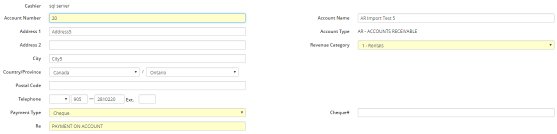 The A/R Cash Receipt is where one would create an A/R Receipt for an A/R customer account. An A/R account for a customer must be created before an A/R cash receipt can be created. Refer to How to Create an A/R Account for more information on this process.