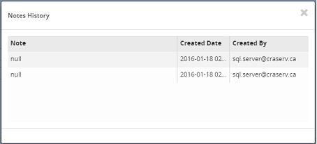 8. In the Note History dialog box, all notes added regarding this budget voucher will display here and are read-only.