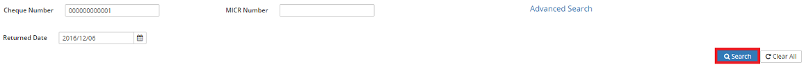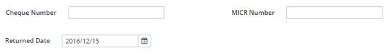 Note: These are auto-complete fields. When entering part of the Cheque Number or MICR Number, multiple cheques may be returned.