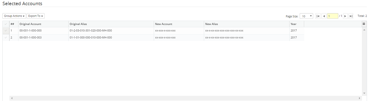 Note: Use the Group Actions to delete all, delete selected or clear selected G/Ls from the grid.